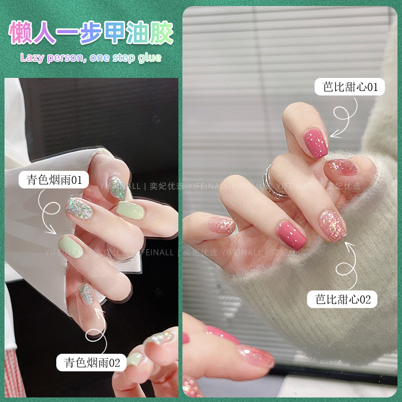 多巴胺美甲懒人一步甲油胶套装2025新款指甲油免烤脚趾亮片三合一