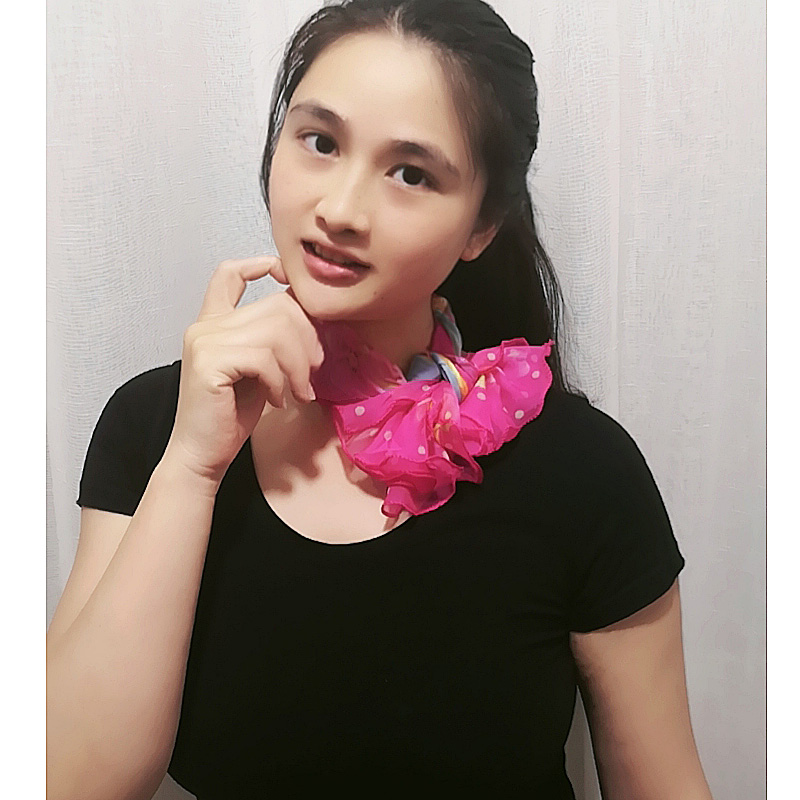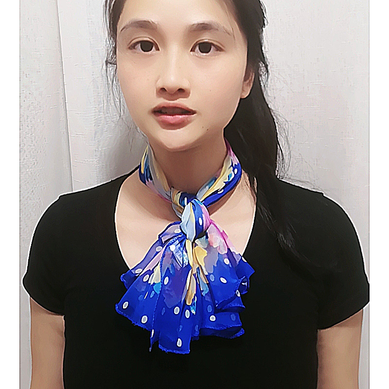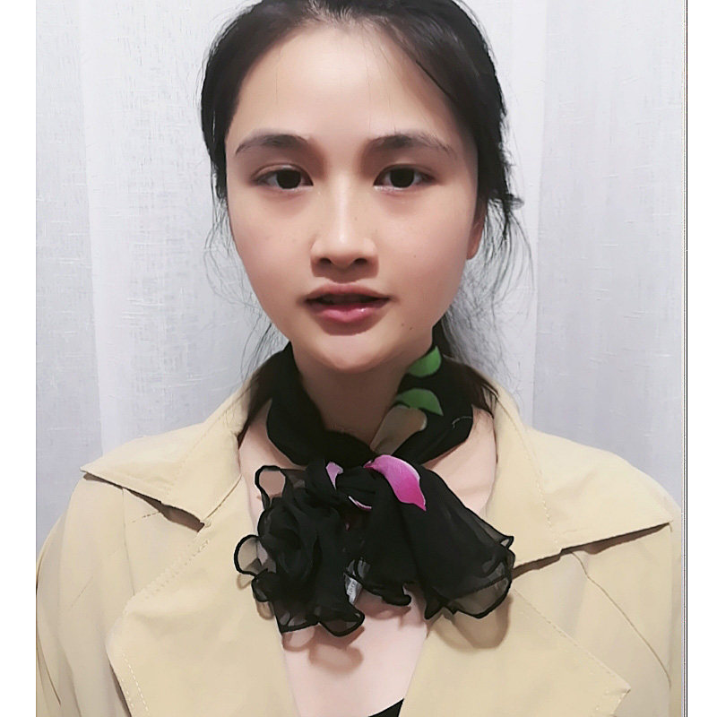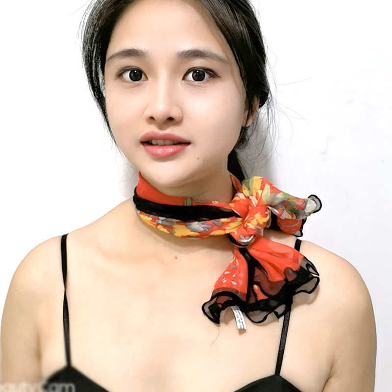 荷叶边小方巾女士春秋冬季时尚职业小领巾雪纺仿真丝木耳边小丝巾