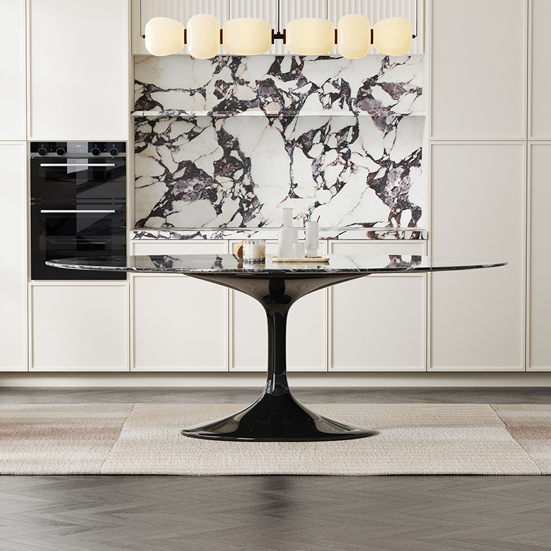 慕梵迪轻奢天然大理石餐桌高端别墅普拉达绿设计师创意椭圆形餐桌