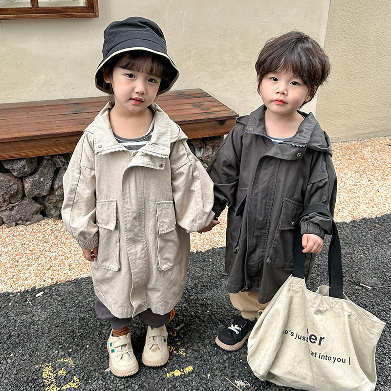 儿童外套中长款女童男童连帽风衣2025新款春秋装韩版宽松宝宝上衣