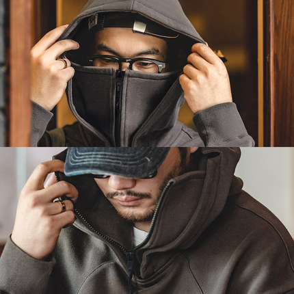 马登工装美式重磅巴拉克拉法卫衣面罩连帽衫拉链机能忍者外套男秋