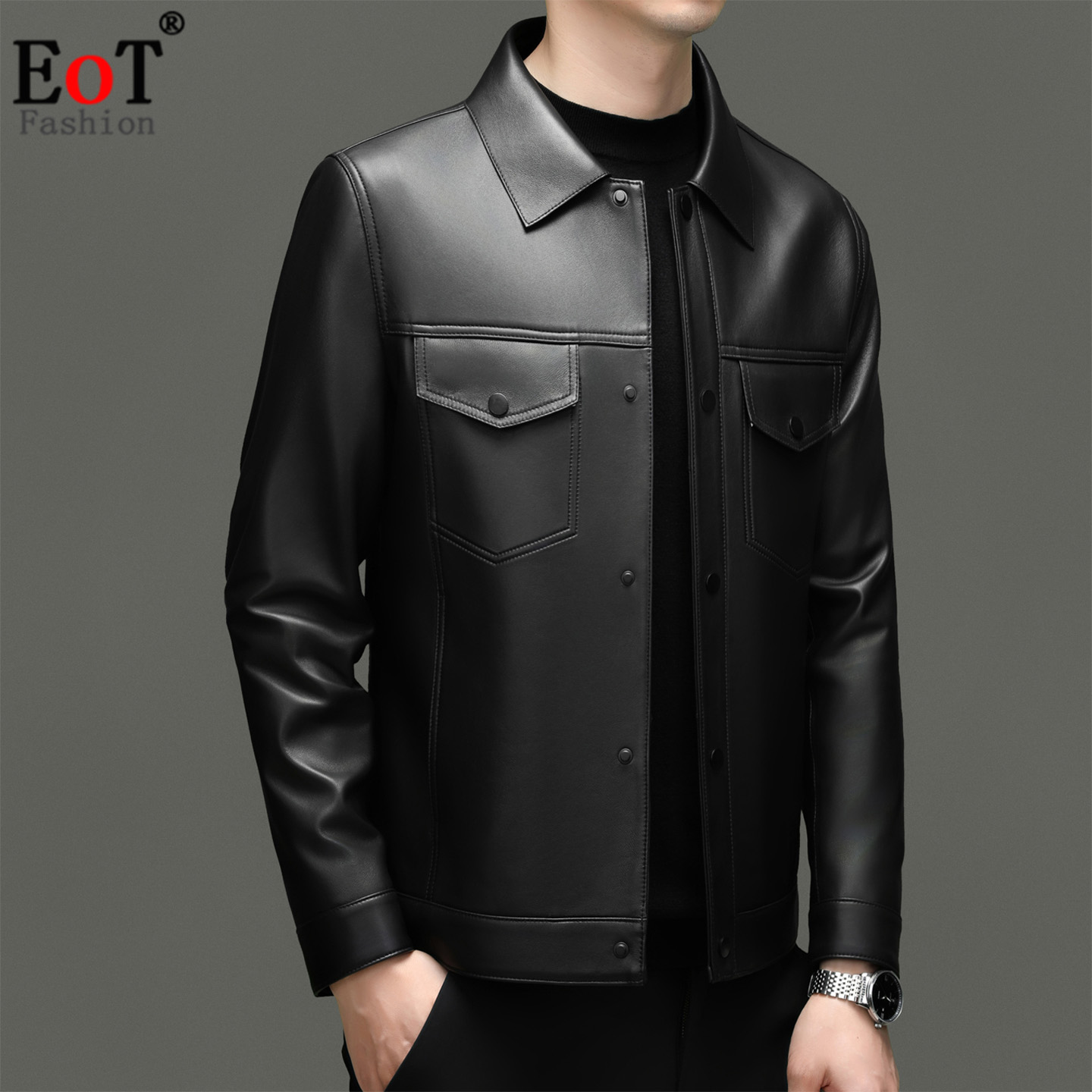 真皮皮衣男翻领短款绵羊皮商务外套静奢风皮夹克