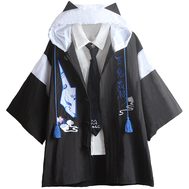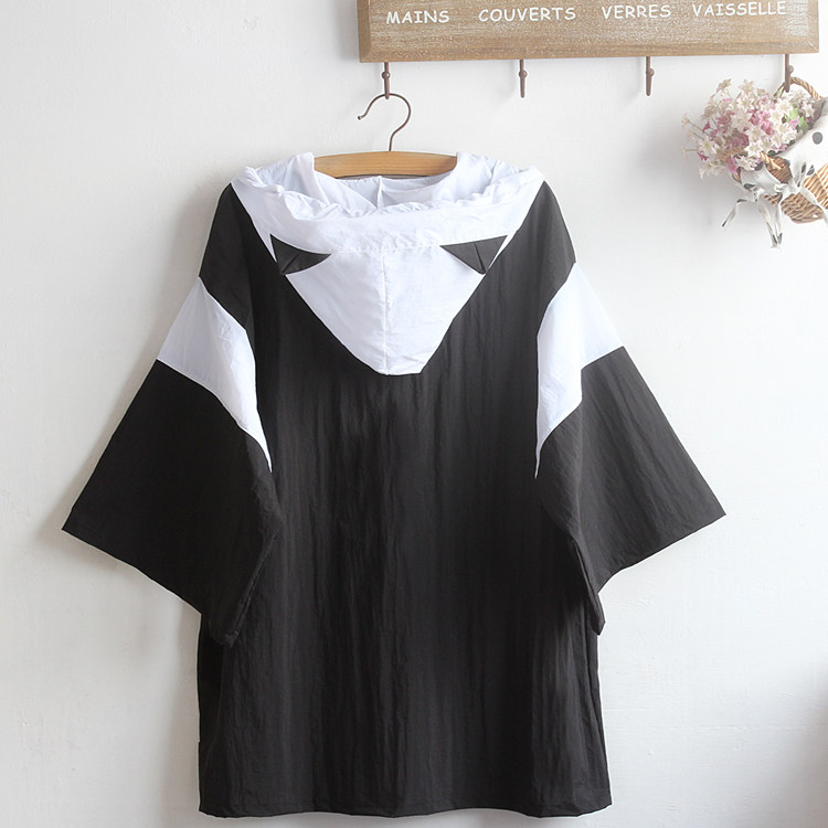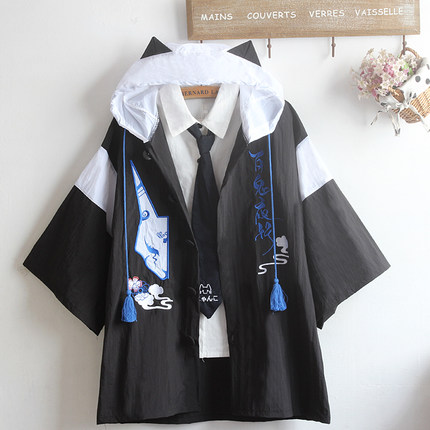 国风男女同款防晒衣可爱减龄夏季薄外套拼色古风狐狸贴布中袖开衫