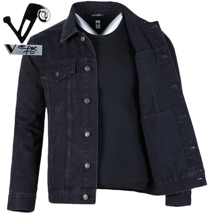 V格黑色牛仔外套男宽松夹克休闲