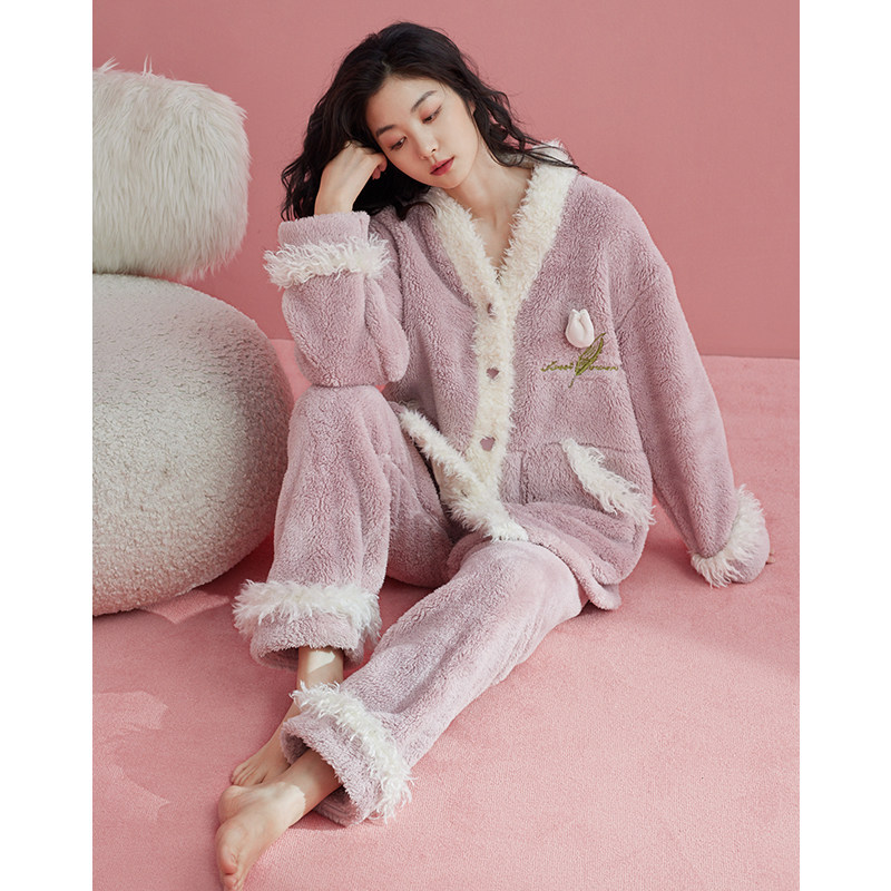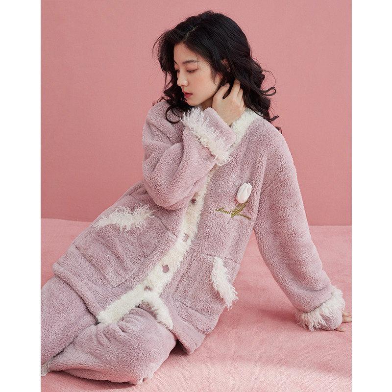 珊瑚绒睡衣女秋冬季加绒加厚甜美可爱公主家居服冬天保暖毛绒套装