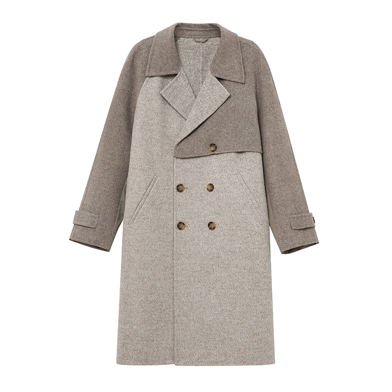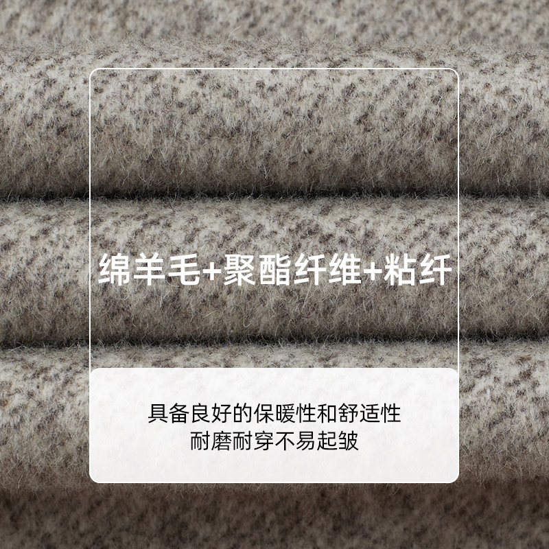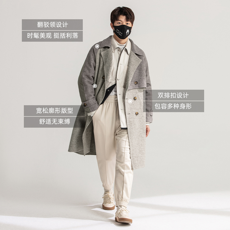 JDV男装春秋新品灰色翻驳领百搭中长款系带绵羊毛呢大衣外套