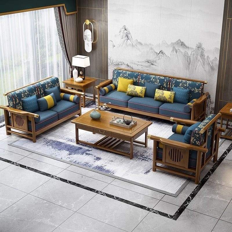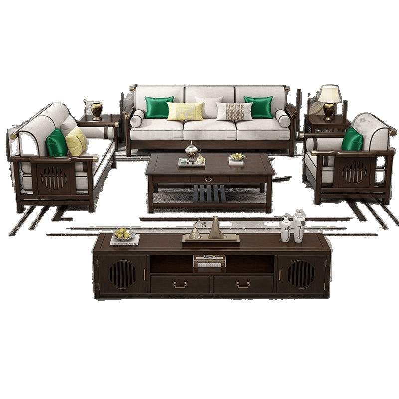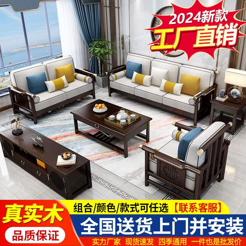 新中式全实木沙发组合现代简约轻奢禅意客厅橡木贵妃转角家具