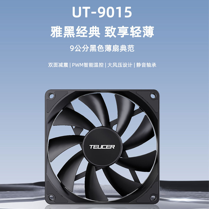 TEUCER机箱风扇9015温控超薄静音9cm电脑cpu散热风扇pwm厚15mm