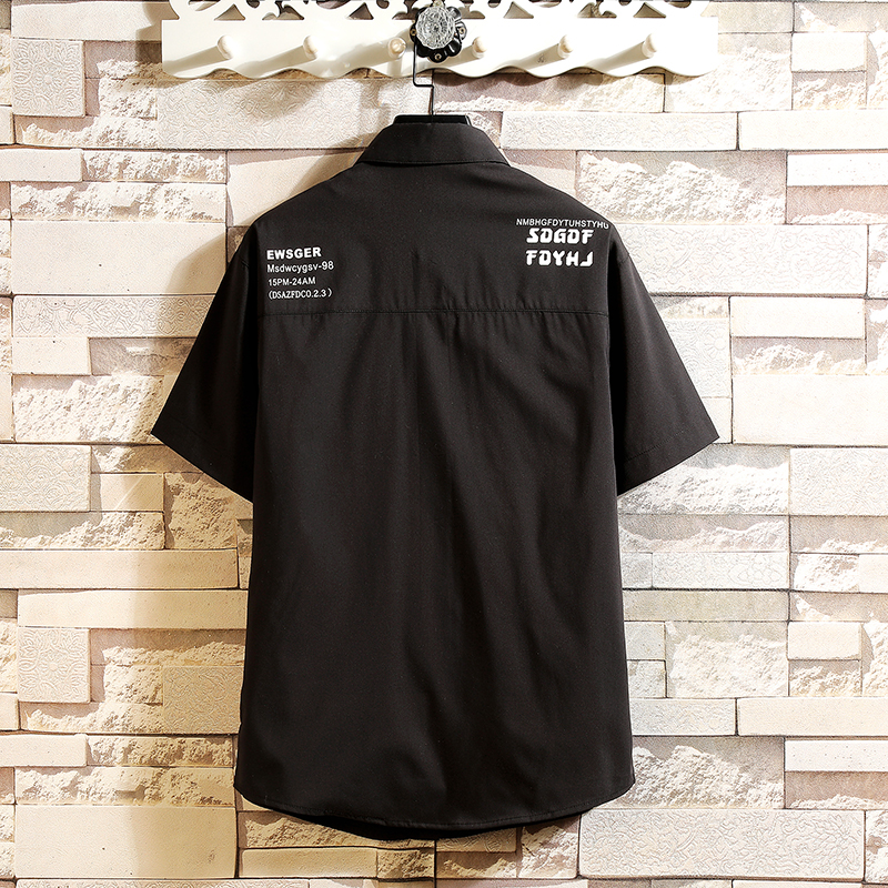 日系港风短袖衬衫胖子男士小众设计感男装痞帅大码衬衣夏季外套男
