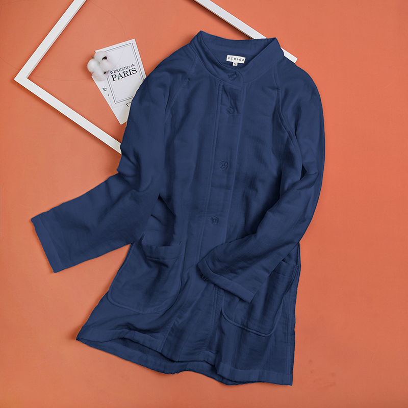商场同款uchino内野棉花糖单面纱布毛圈女士对襟开衫 透气家居服