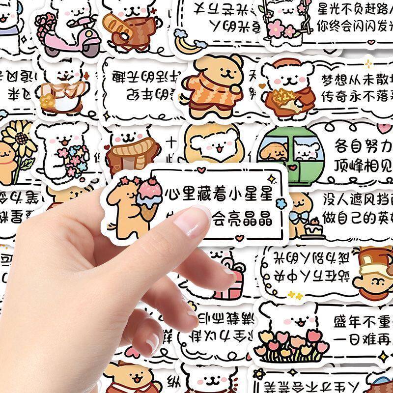 120张线条小狗励志文案贴纸卡通可爱自律ins装饰手机手账贴画防水