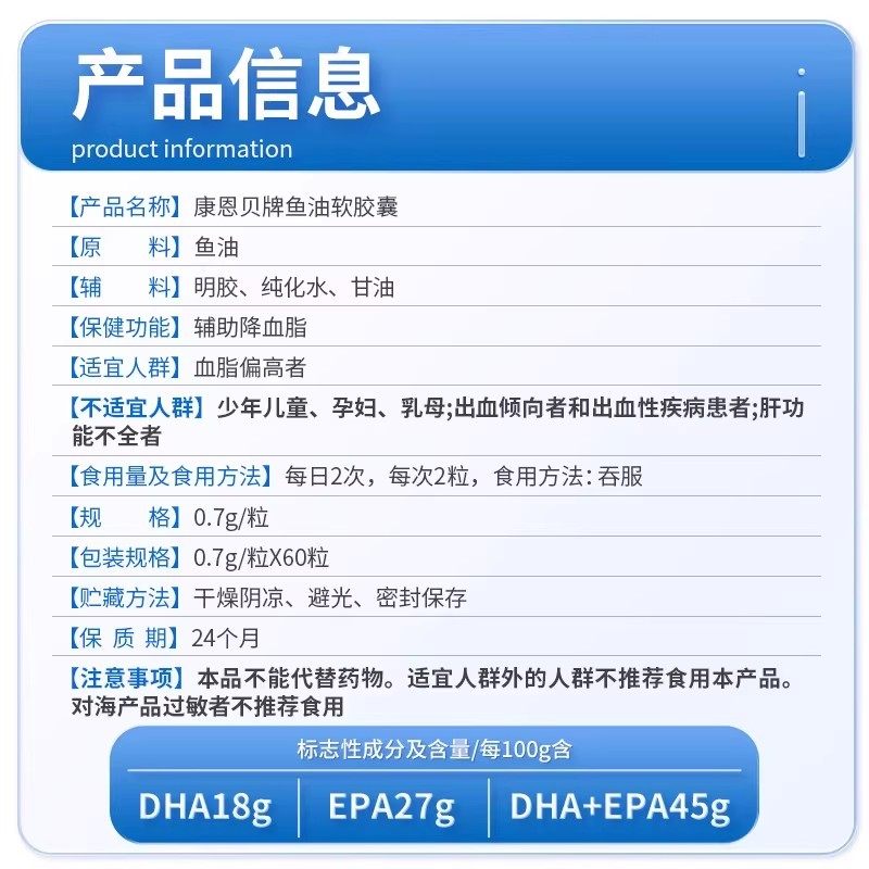 康恩贝鱼油胶囊辅助降血脂omega3