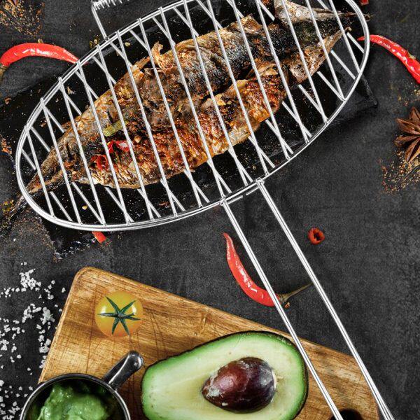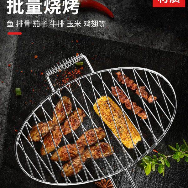 烤鱼夹子不锈钢烤鱼架子烤鱼网夹烧烤网夹板圆形烧烤用具商用大号
