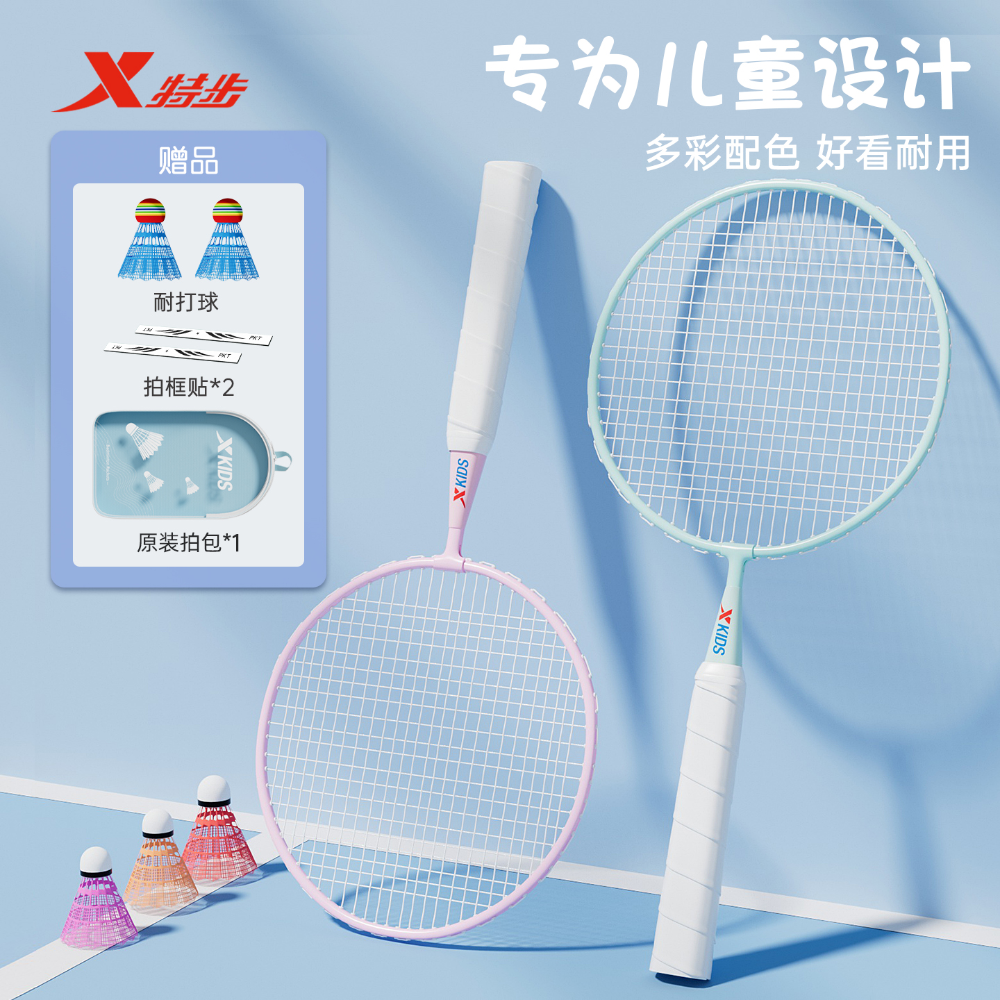 特步儿童羽毛球拍正品专业耐打双拍训练套装小学生专用超轻3-12岁