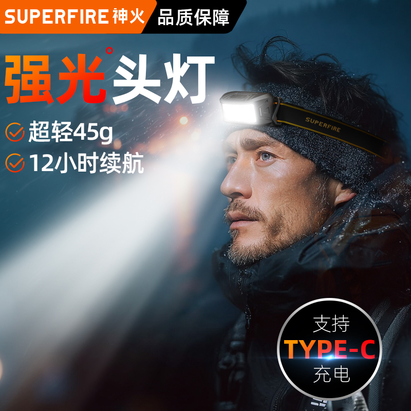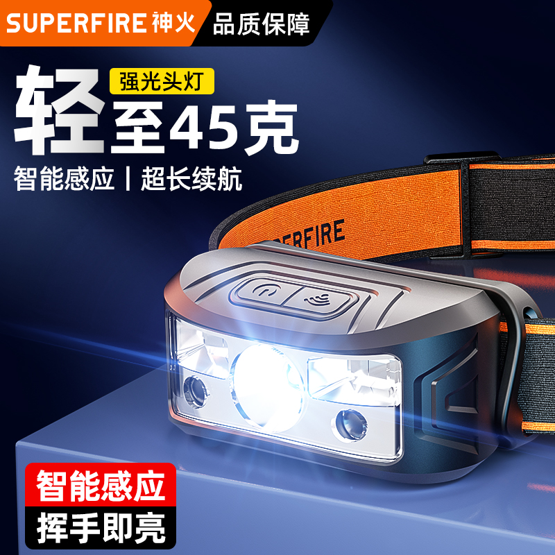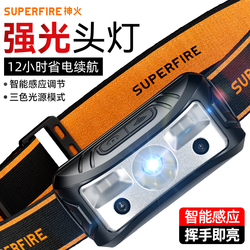 神火头灯强光充电超亮夜钓鱼专用感应头戴式照明超长续航登山赶海