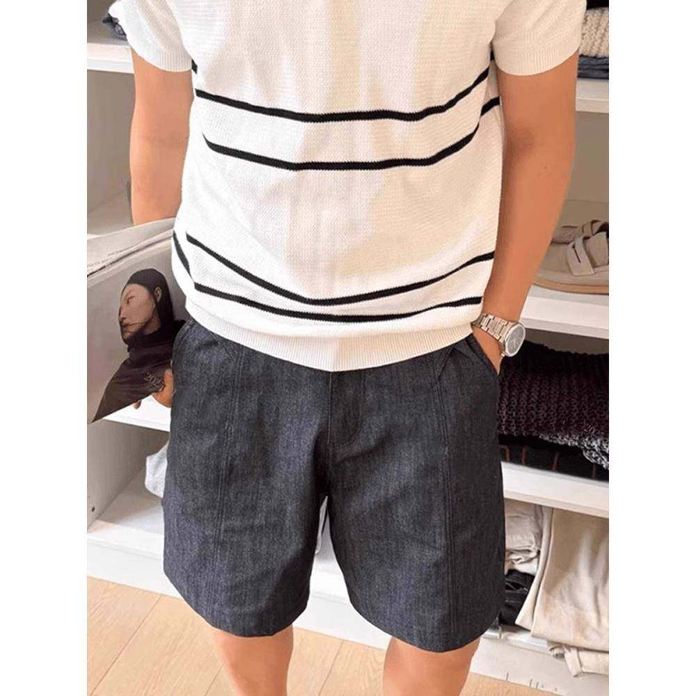 潮牌轻奢覆古老钱风白色亚麻短裤男夏季高级感外穿直筒五分半截裤