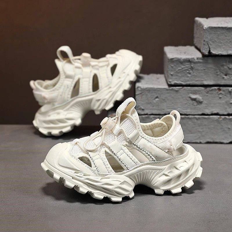 真皮儿童鞋子2025新款白色男童运动凉鞋夏季包头沙滩鞋女童镂空老
