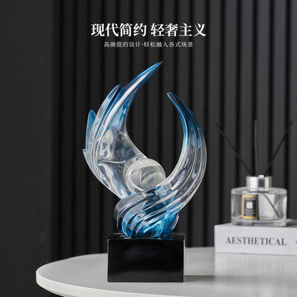 风生水起摆件轻奢透明树脂现代简约客厅玄关艺术高档装饰