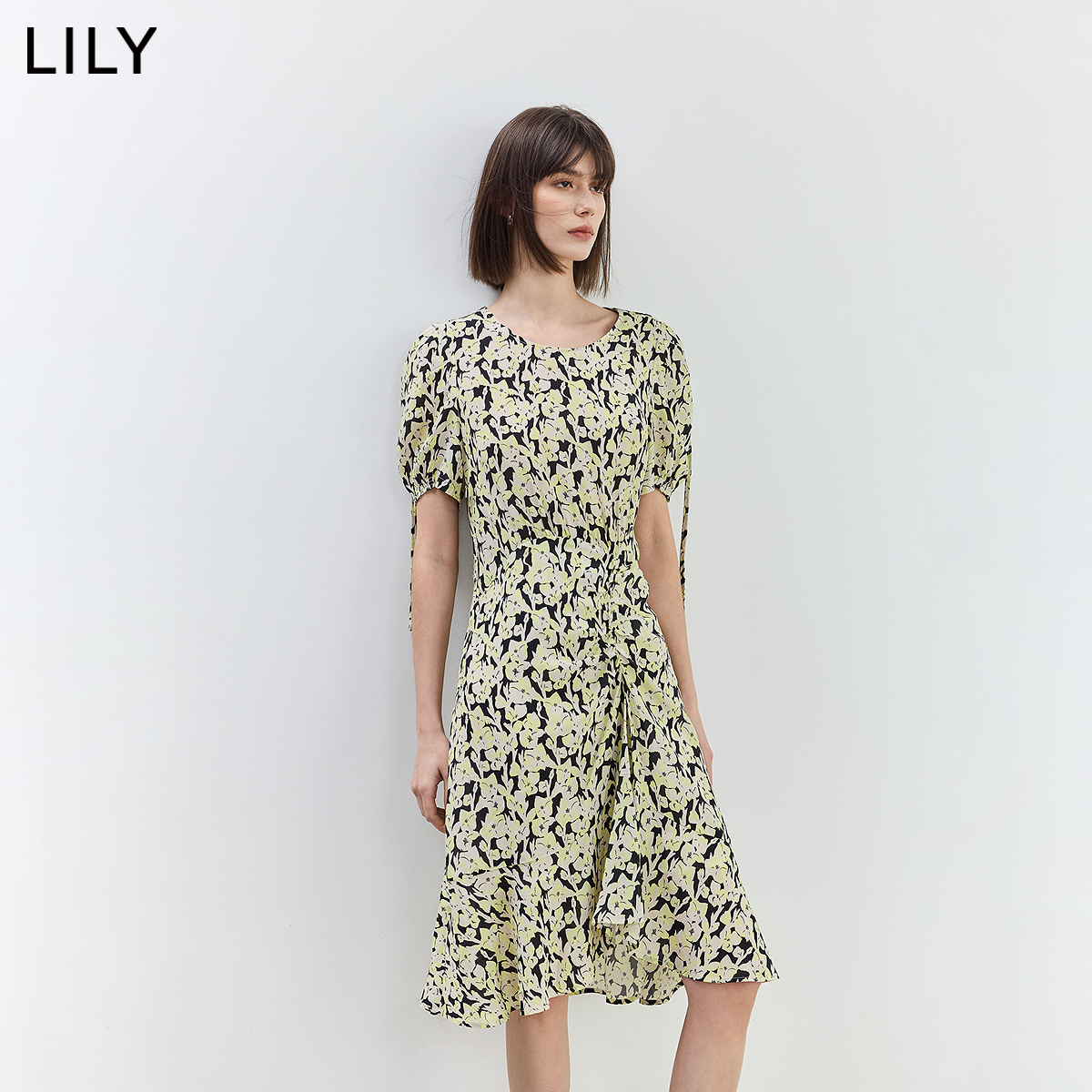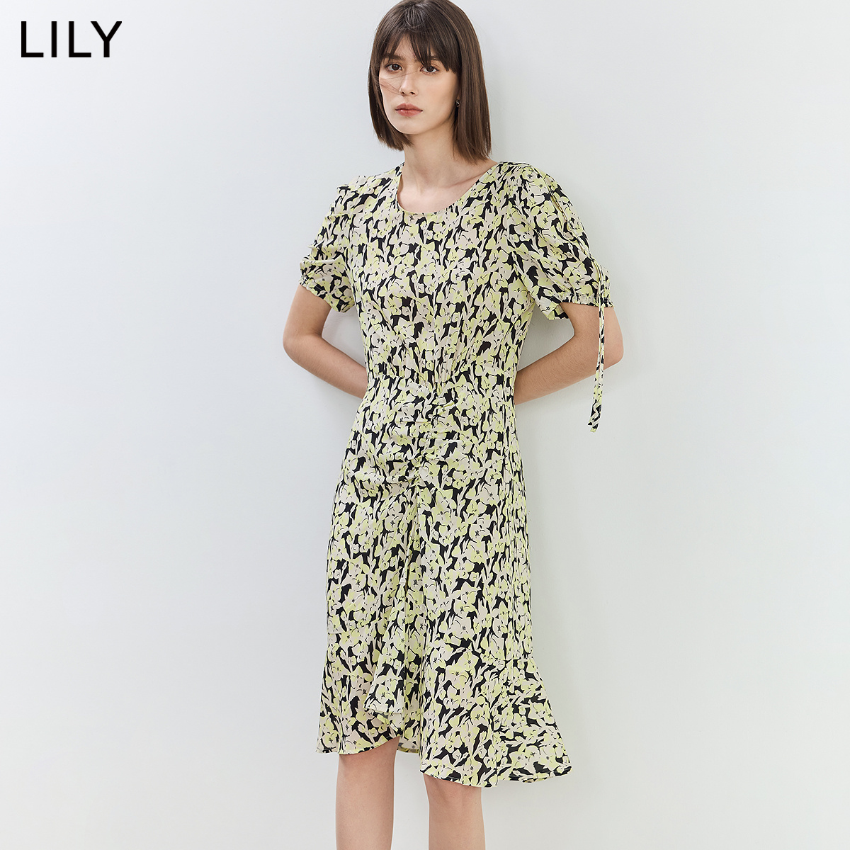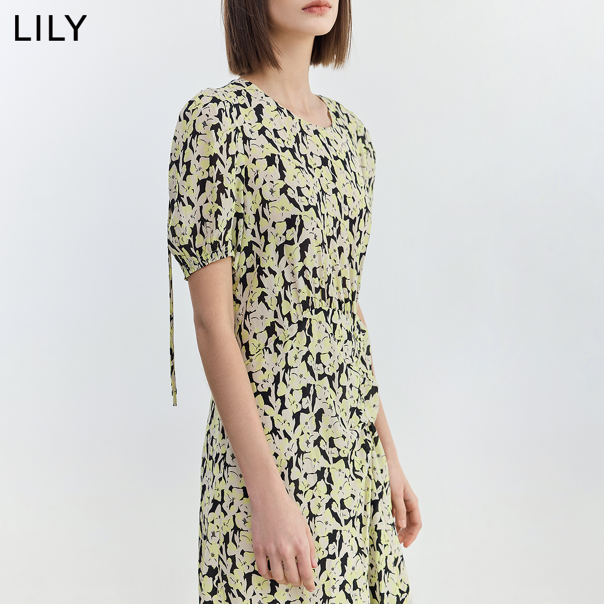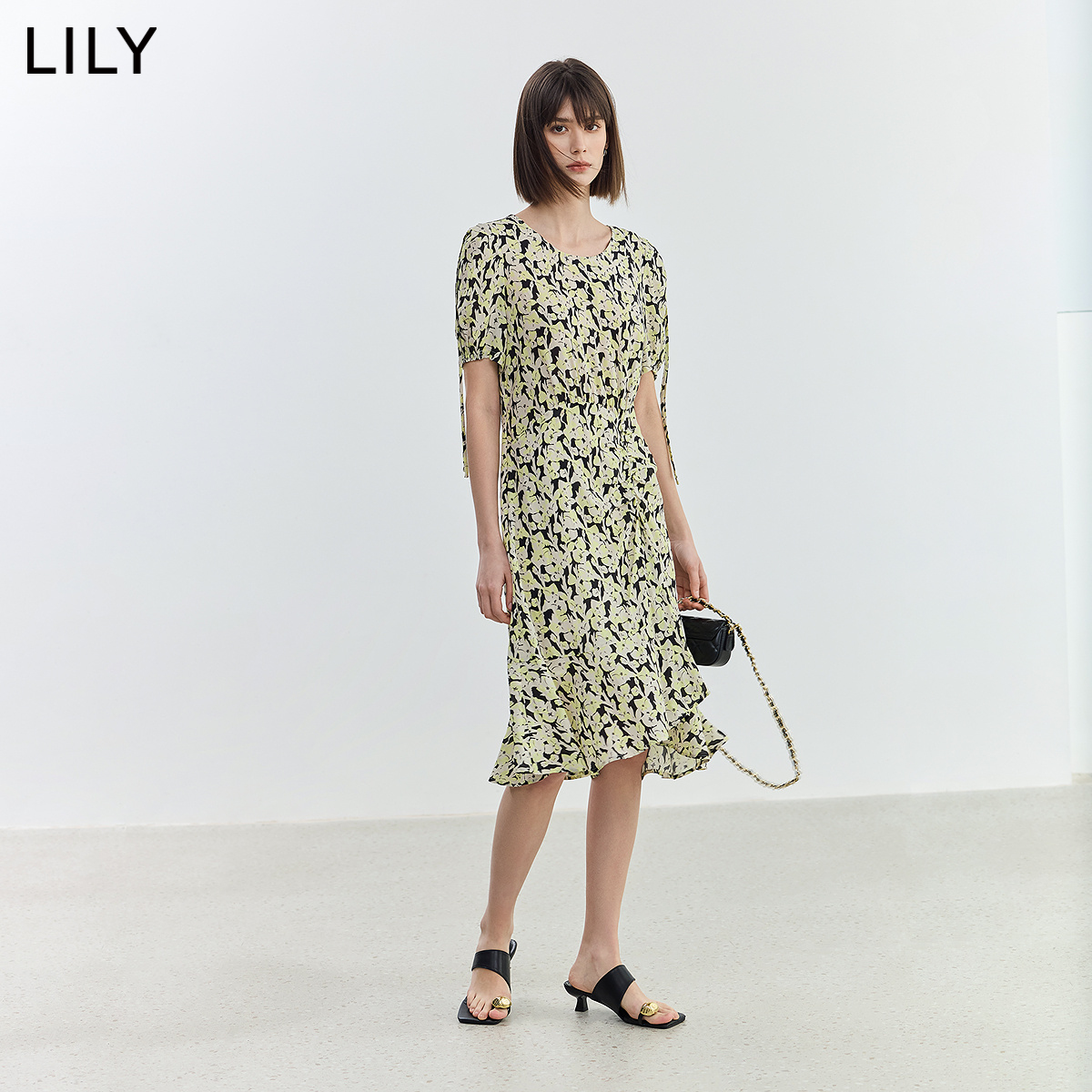 【商场同款】LILY夏新款女装浪漫时尚印花气质V领中长连衣裙