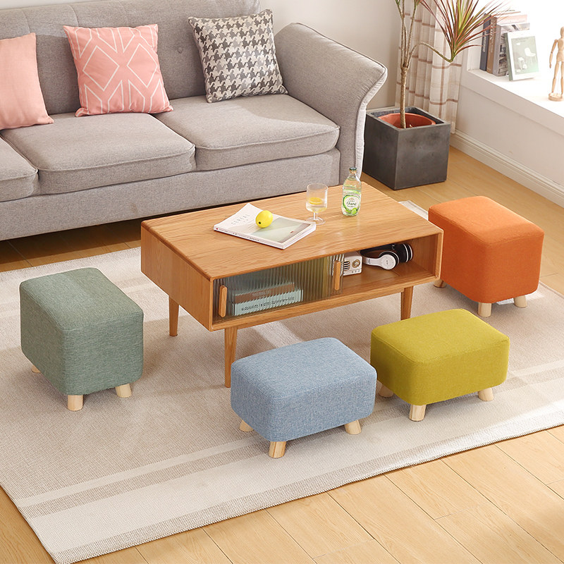 布艺小凳子实木换鞋凳创意简约客厅沙发茶几凳家用矮凳网红长板凳