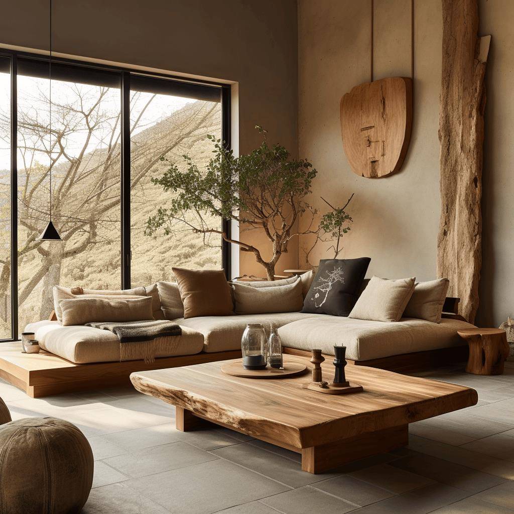 侘寂风实木沙发民宿家俱客厅沙发氛围感原木定制L形沙发椅组合