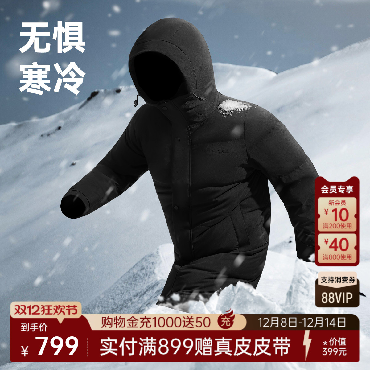 三防利郎中长款连帽羽绒服