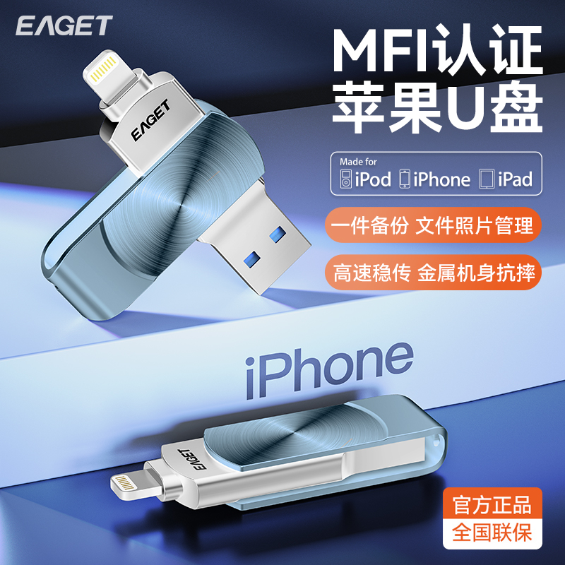 忆捷/EAGET苹果手机U盘256G大容量U盘手机电脑两用U盘高速办公i66