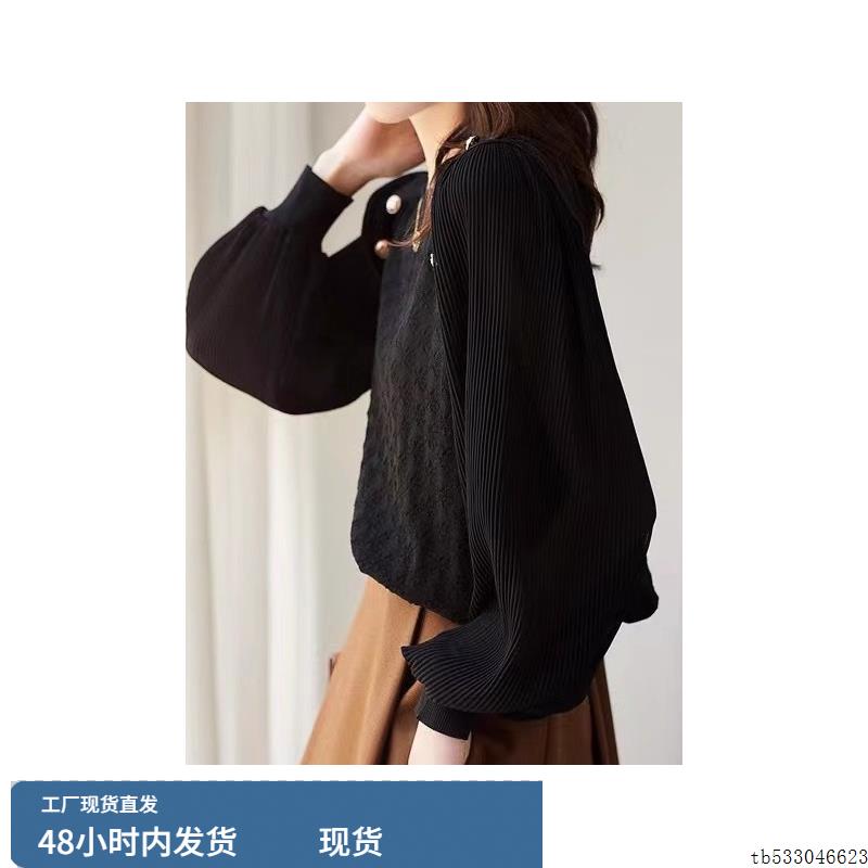 蕾丝衫女2025春季新款时尚百褶灯笼袖拼接假两件雪纺上衣减龄小衫
