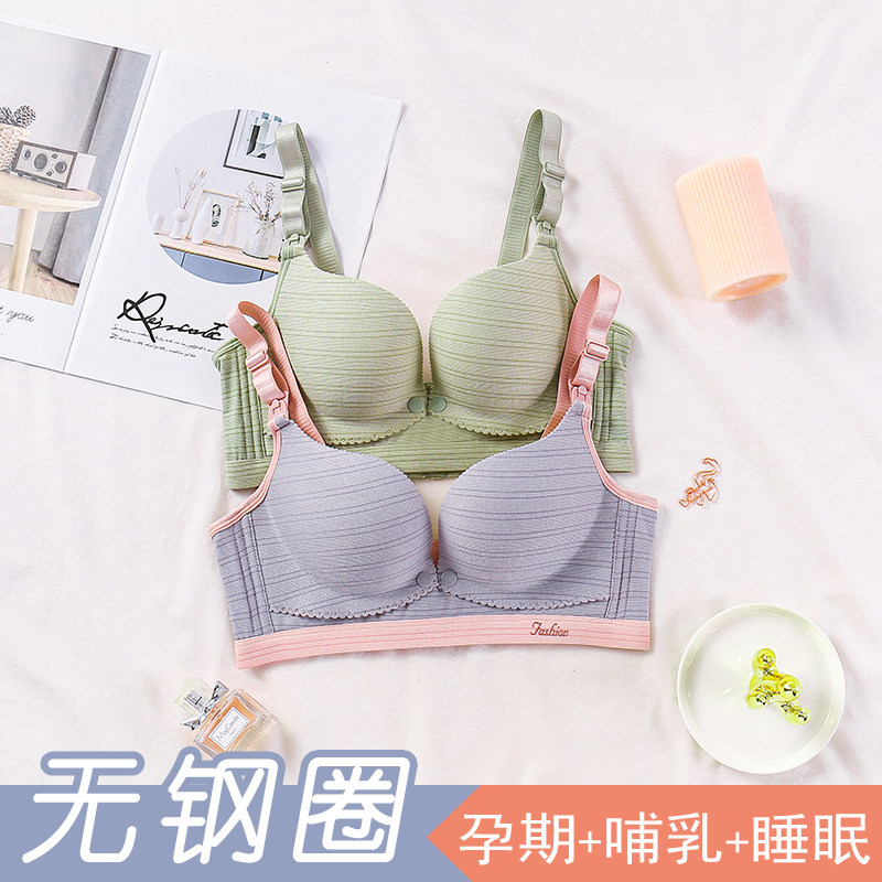 哺乳文胸聚拢防下垂孕妇内衣怀孕期喂奶胸罩产后前开扣式大胸浦女