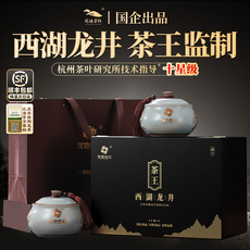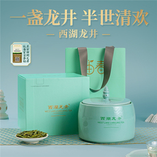 由春西湖龙井茶明前精品特级三花印月陶瓷礼盒装送礼绿茶100g