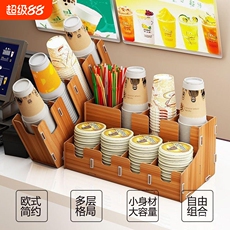 奶茶杯子置物架一次性收纳架商用店纸杯吸管桌面多功能纸巾储物架