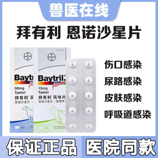 拜有利恩诺沙星消炎片狗狗猫咪猫鼻支治疗兽用宠物感冒15mg50mg