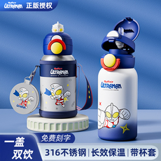 奥特曼儿童保温杯学生上学专用水壶吸管杯子小男孩宝宝幼儿园水杯