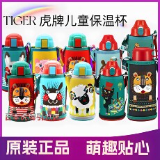 日本TIGER/虎牌儿童保温杯吸管杯600ml幼儿园水壶双盖双用卡通款