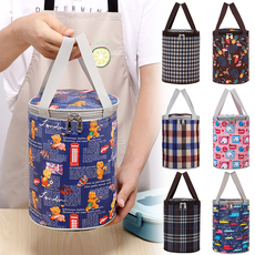 日式学生饭盒袋圆形圆桶铝箔加厚大容量防水手提便当包保温桶包袋