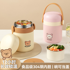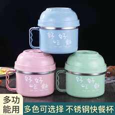 快餐杯卡通便当盒304不锈钢儿童保温饭盒2双层隔热宿舍泡面碗杯女