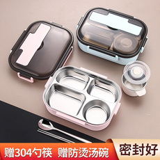 304不锈钢饭盒便当盒保温小学生上学专用儿童分格餐盘上班族餐盒