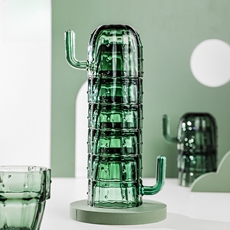 乐唯诗仙人掌摆件造型玻璃杯原色绿玻璃杯具套装水杯家用高颜值