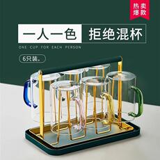 高颜值玻璃杯套装轻奢家用客厅杯具待客茶杯带把水杯家庭喝水杯子