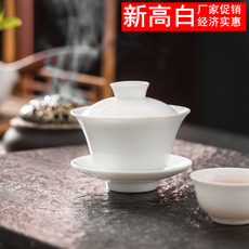 纪森新高白盖碗茶杯茶盘大小号茶碗中式风纯白泡陶瓷潮汕功夫茶具