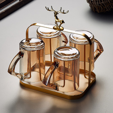 客厅杯子套装带把手泡茶杯玻璃杯水杯家用茶杯待客喝水杯子啤酒杯