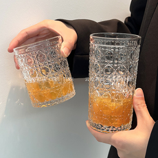 ins北欧风复古浮雕玻璃水杯牛奶果汁奶茶杯啤酒杯子威士忌杯网红
