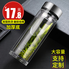蓝水晶双层玻璃杯茶水分离泡茶杯子车载水杯男礼品定制刻字印logo