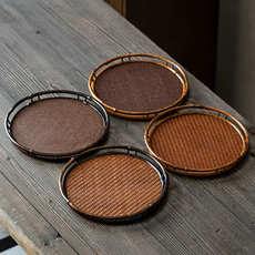 湘妃竹茶托 竹编席面奉茶盘 茶杯茶壶茶具收纳整理 功夫茶道零配