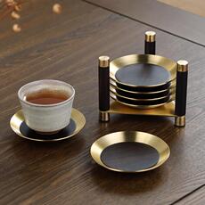 批发铜木杯垫茶杯托隔热垫黑檀实木家用功夫茶具茶托茶具配件