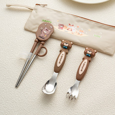 沃德百惠316儿童餐具套装卡皮巴拉家用辅食叉勺宝宝学吃饭训练筷