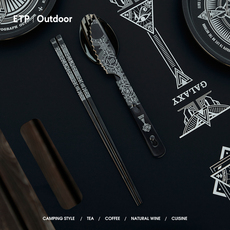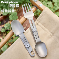 纯钛户外露营随身便携多功能折叠筷叉勺野外钛合金组合餐具套装