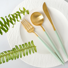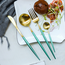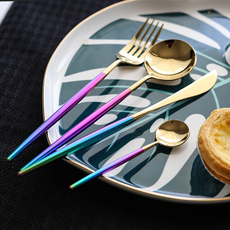 葡萄牙 304不锈钢 炫彩金色西餐刀叉勺三件套 网红勺筷子餐具套装