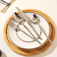 西餐甜品汤勺大餐盘筷子高档家用勺子不锈钢三件套刀叉勺餐具套装