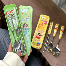 儿童勺子筷子叉套装不锈钢勺便携筷宝宝吃饭叉勺一体学生卡通餐具